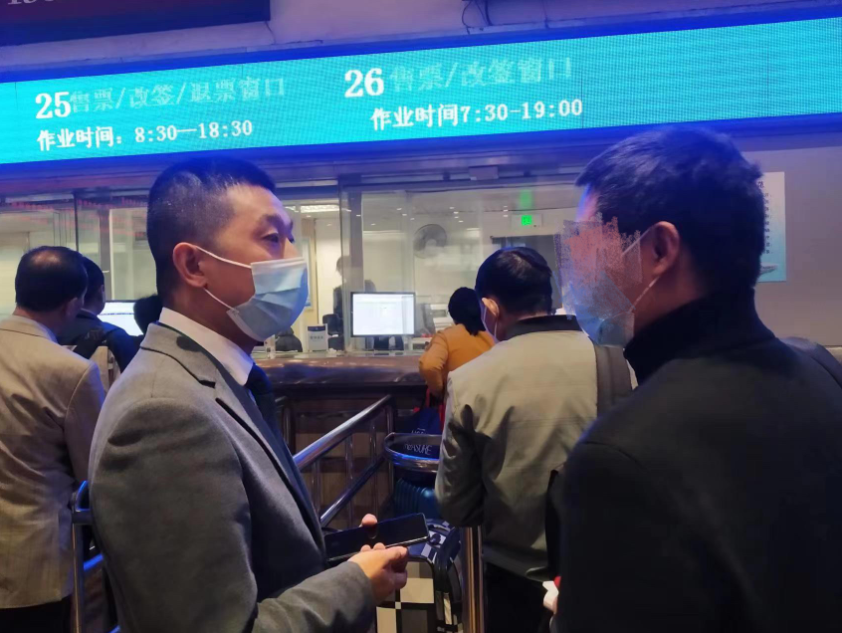 王会彬(左)把男子送到火车站,帮其买好回家火车票
