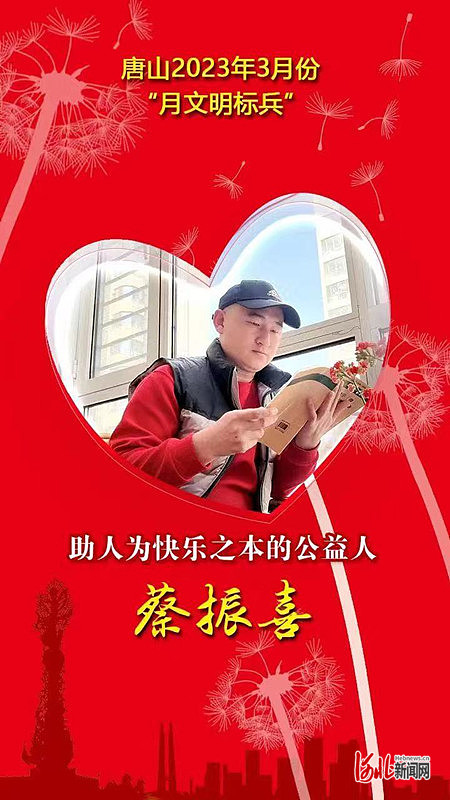 蔡振喜,中央储备粮唐山直属库有限公司物流操作班长。蔡振喜始终怀揣一颗乐于助人的心,数年如一日,默默地帮助着身边需要帮助的人。作为海港综合志愿者,他倡导群众捐赠图书和学习用品给北部山区的孩子们,然后自费驱车送到学校。他曾带领单位班组成员为姜各庄孤寡老人送去年货,曾联系相关救援组织开展多次救援协助工作,在深夜寻找走失高中生、全力搜救走失的智障妇女、寻找汤家河镇走失中年男子、协助搜救海里失踪人员等。对于蔡振喜来说,这样无私帮助他人的事还有很多。蔡振喜用实际行动诠释了英雄来自人民群众,助人乃快乐之本。