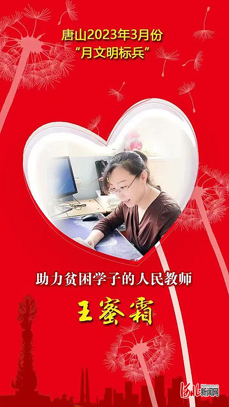 王蜜霜,唐山市税东中学教师(开平)。20多年来,她始终把帮扶贫困学生作为分内工作,作为一名志愿者,累计服务时长超过1200小时。她通过各种资助形式,筹集物资6万余元,帮助了30多名贫困学生。作为班主任,从2014年到2020年她曾对一名生活拮据的同学,一直在思想上积极引导,生活上默默关心,同时联系爱心人士资助款物超过2万元。学校里一名七年级同学父母均为残障人士,家庭条件困难,她多方奔走联系到爱心资助人汤女士,每月为该同学提供600元的助学资金,直至该生考入大学。还有一位同学的父亲残疾,每月仅靠七旬奶奶的退休金生活,该同学考入天津师范大学后,在王蜜霜的奔走联络下,由爱心人士崔女士每月为孩子提供了1500元的资助。作为一名党员教师及班主任,王蜜霜一直用爱心和责任心守护着孩子们的成长。