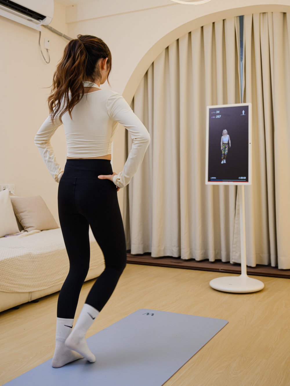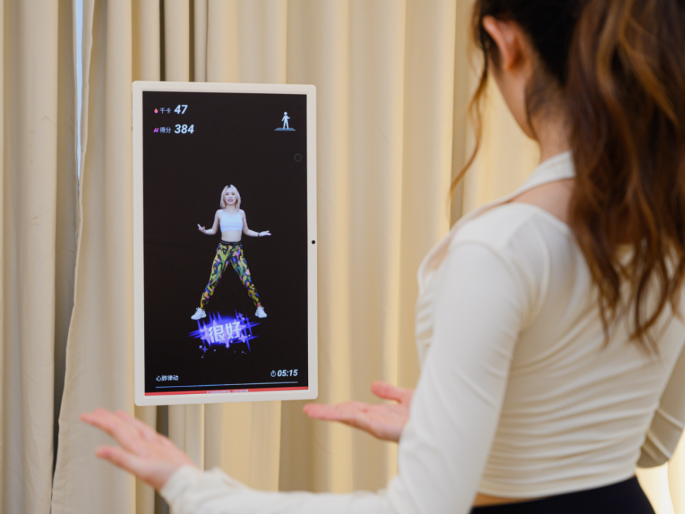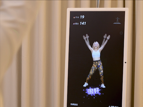 之前拍添添自由屏的时候,我们就觉得它的AI健身功能特别好玩,这次换了闺蜜机,第一个感觉就是,屏幕更大,练起来更方便了!轻度近视的小伙伴,距离稍远一点,也能看得清动作~▼