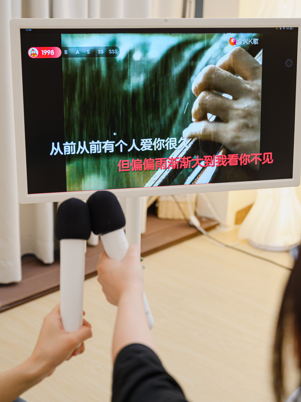 连接添添闺蜜机,在家就可以尽情K歌