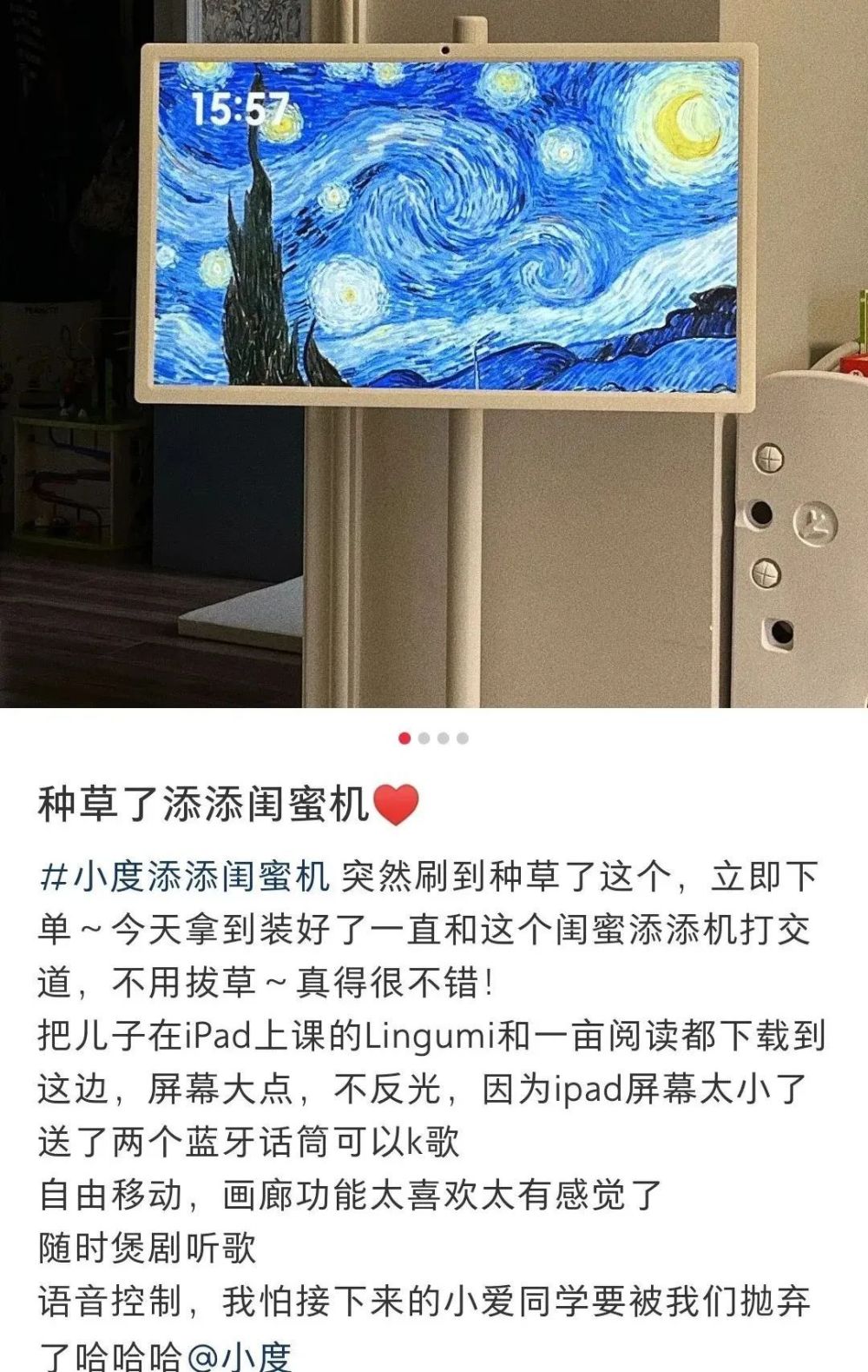 总的来说,买一台闺蜜机,约等于拥有了移动电视+平板+学习机+健身镜+歌词音箱+家庭艺术品+点唱机!而且全家人都能用,真的超值!