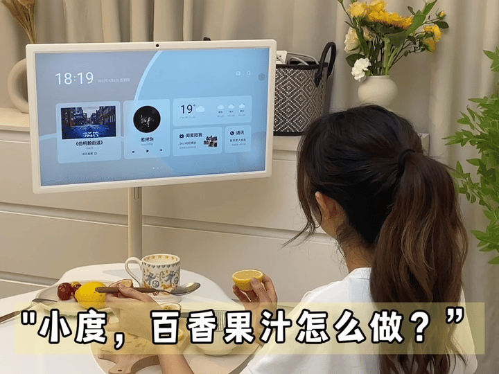 在备菜的时候想找菜谱,手脏了不方便按屏幕,也可以找小度帮忙。我们试着问它,怎么做百香果汁,它听到后立马就弹出了教程。?