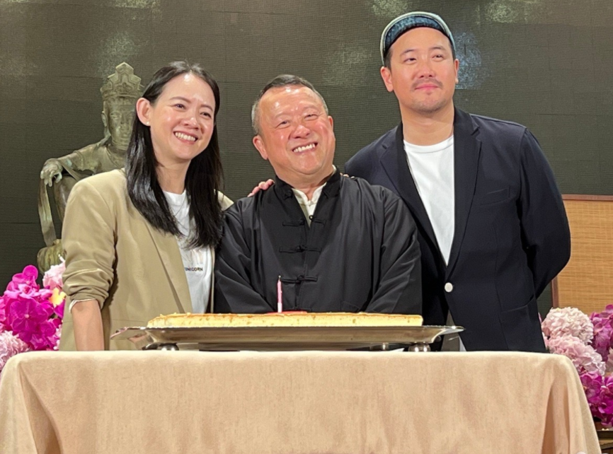 适逢曾志伟70岁生日,主办方特意送上蛋糕为他庆祝。子女曾国祥、曾宝仪更陪着他切蛋糕,让他开心不已,笑到合不拢嘴。