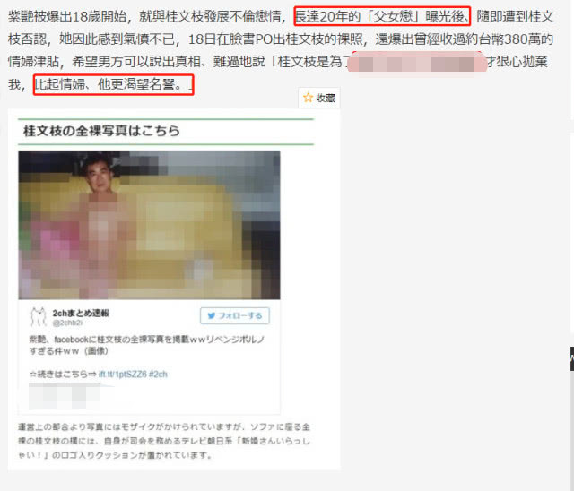 不过紫艳这一生,最令人惊叹的还是与大34岁的桂文枝的“父女恋”一事。她不顾名分当对方的小三,但在恋情曝光之后,男方否认恋情,紫艳直接在自己的社交平台曝光对方不雅照来反击,也坐实了两人的恋情,毕竟不雅照这样的照片除了亲密的爱人还有谁能拥有呢?