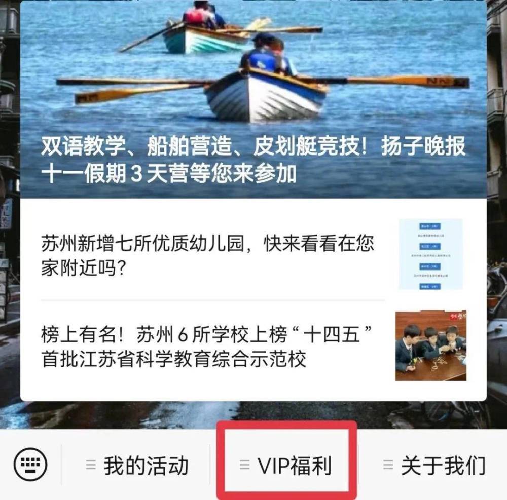 关注“扬子苏州教育”微信公众号-点击公众号主页下方菜单栏“VIP福利”-进入“VIP小记者招募”-根据提示填写相关信息,提交缴费即可。具体操作如下: