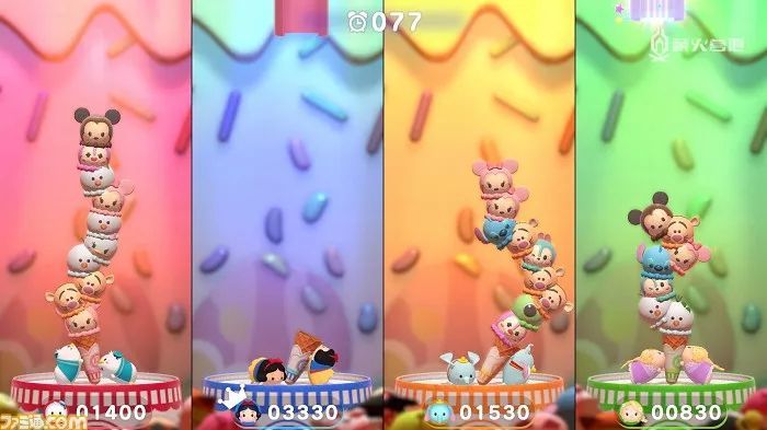 除了迷你游戏之外,还可以游玩到「Tsum Tsum」中那些熟悉的益智游戏!而且不仅可以通过竖持主机以及触屏操作进行游玩,还可以将各自的主机本体凑在一起实现双人对战。