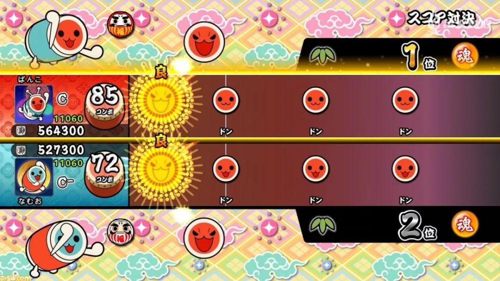 演奏时也只有「咚」和「咔」这两种操作。仅仅需要按照谱面上的音符节奏在特定时机进行上述的两种敲击就能顺畅游玩,因此平时不玩游戏的人也能很快适应。
