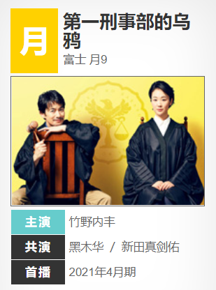 这次是竹野内丰睽违11年接演富士的招牌黄金档“月九”,在这部剧中他将要化身成刑事裁判官,与实力派演员黑木华进行飙戏。