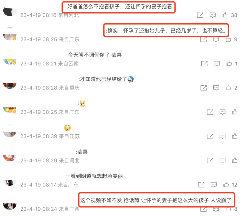 “好爸爸怎么不抱着孩子,还让怀孕的妻子抱着”“这个视频不如不发”人设崩了等言论。