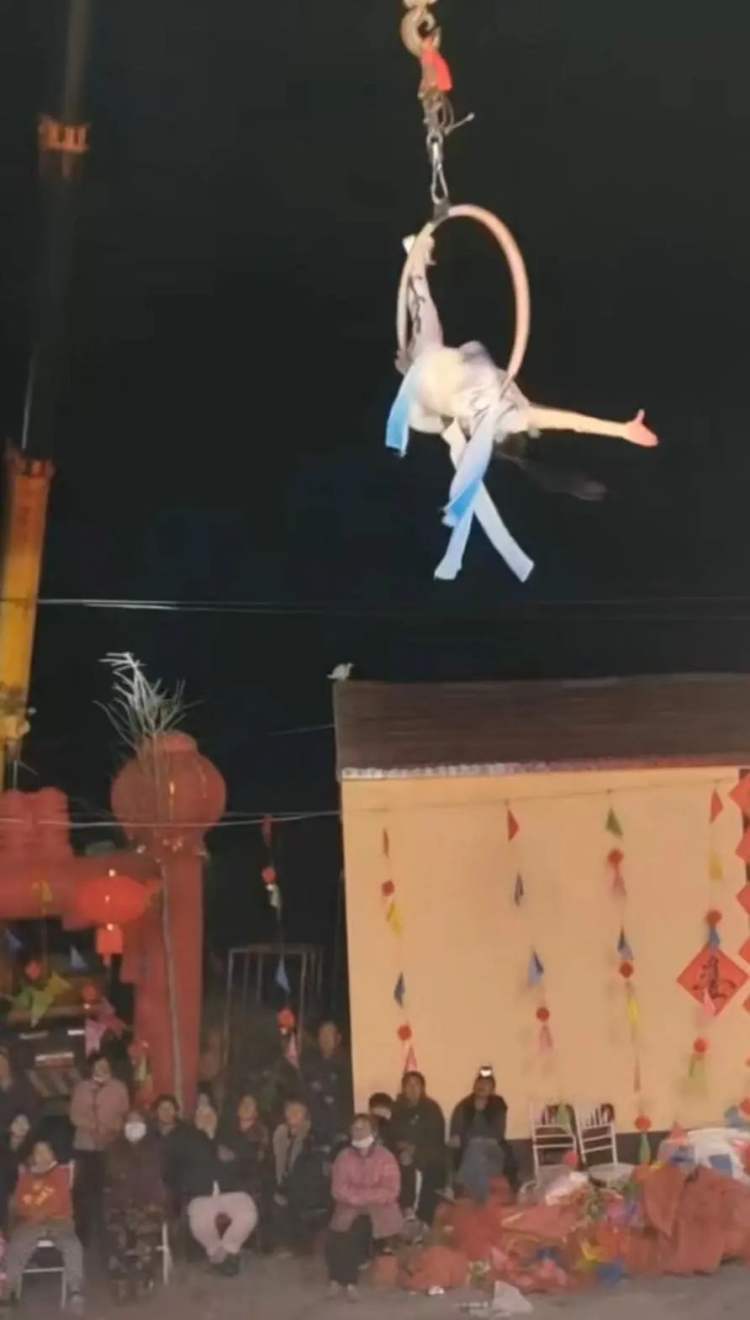 这是4月15日晚上,一场在安徽宿州埇桥区蒿沟镇上演的大型杂技表演。