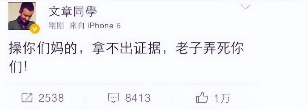 文章恼羞成怒,直接在社媒爆粗口:“拿不出证据,老子弄死你们。”