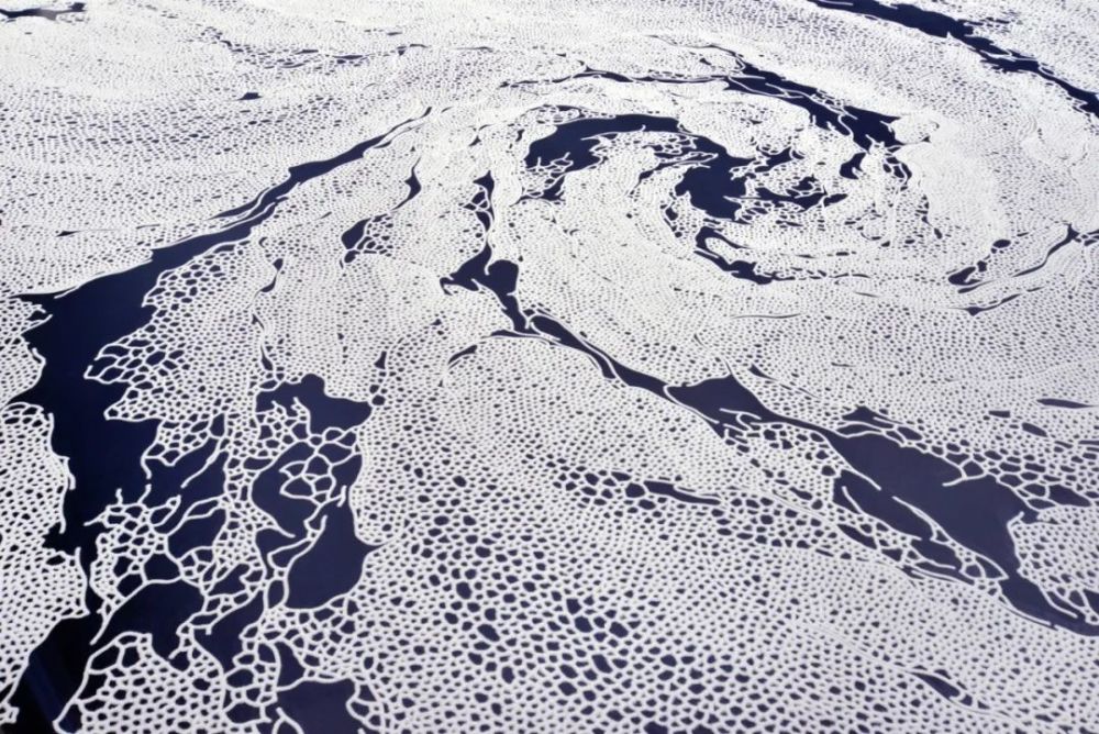 2012年,艺术家又开始着力于绘制气泡和漩涡等等图案。因为他认为,漩涡象征着生与死的循环,代表着永恒的复活和再生。画作中洁白的盐粒和地面浓郁的色彩交织在一起,让人想到吞吐万物的海洋。而小小的气泡象征着点滴的记忆和生活中的琐碎事件,艺术家将它们连接起来,希望表达与所爱的人的每一个当下的日常。
