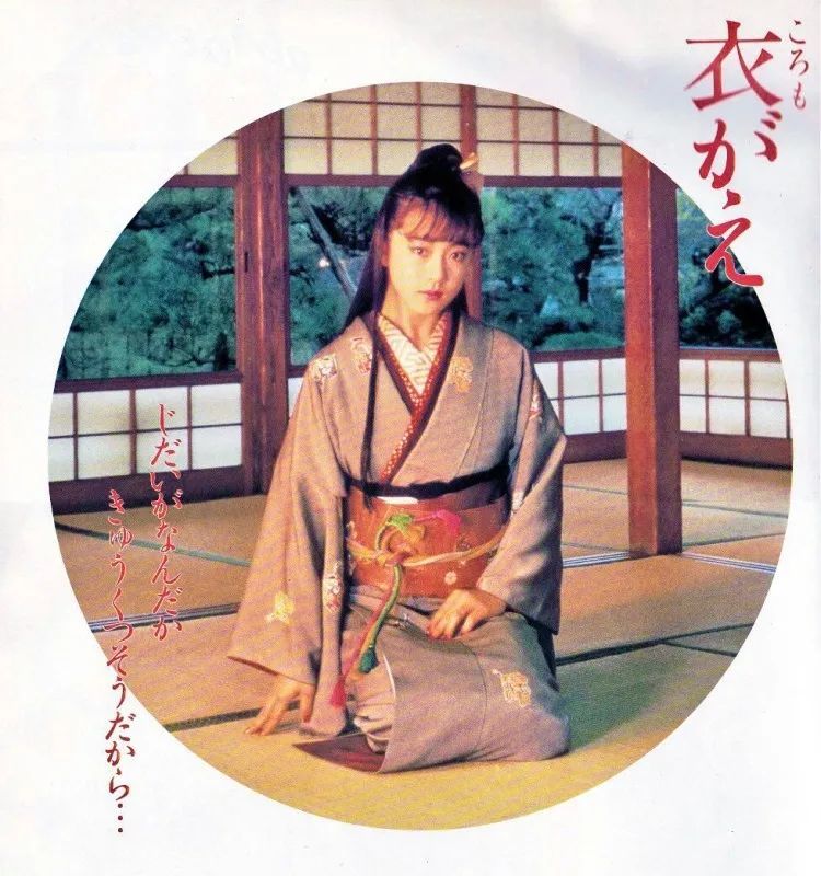 这首歌的封面造型也十分经典,中森明菜身穿日本和服,夸张的空气刘海,眉眼中有些英气。