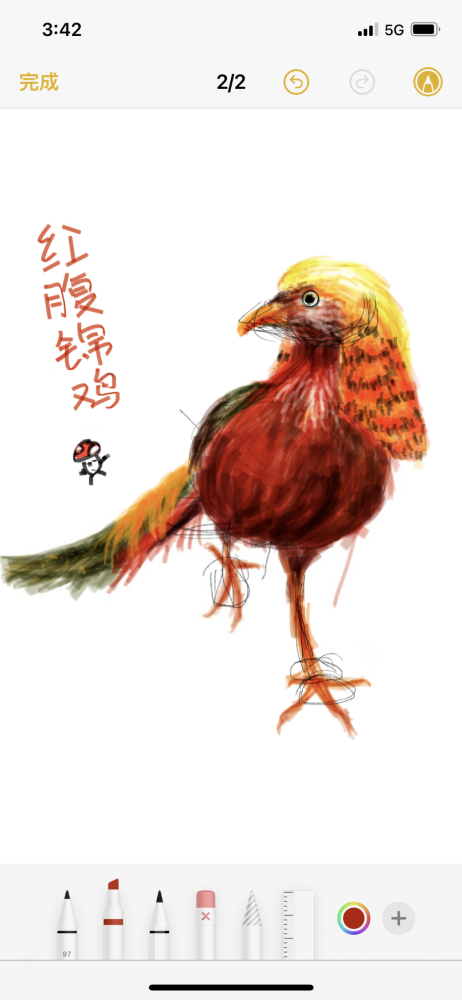 用手指在手机备忘录里戳出来的红腹锦鸡。