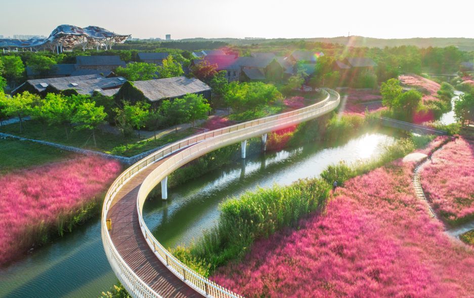 园内分布了大大小小130座桥梁,其中位于衲田花海之上的彩虹桥和镜湖之上的三台桥,是八大最美系列之中的“最美的桥”的代表。彩虹桥全长2.3公里,蜿蜒起伏,如一条巨龙盘卧在衲田花海之上。