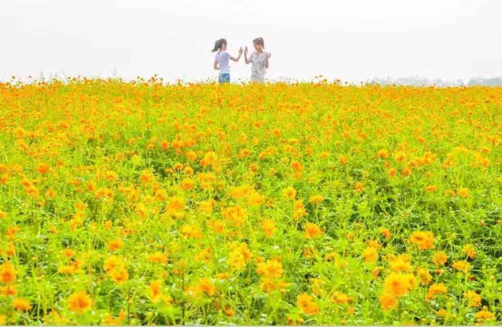 衲田的“衲”是老衲的“衲”,有缝补补缀的含义。衲田花海总种植面积约为2220亩,共有大小田块612块,各田块相接、高低起伏、错落有致50多种花卉在这里四季接力,它们由南到北排列成了一条色带,分别是黄色、红色和紫色。