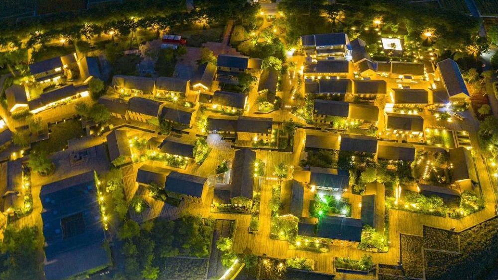 满树繁花胜雪,遍地紫花如霞。入夜,星光夜色笼罩,用星星点点的灯光打作高光,撒一层朦朦胧胧的神秘,化身爱丽丝梦游仙境。