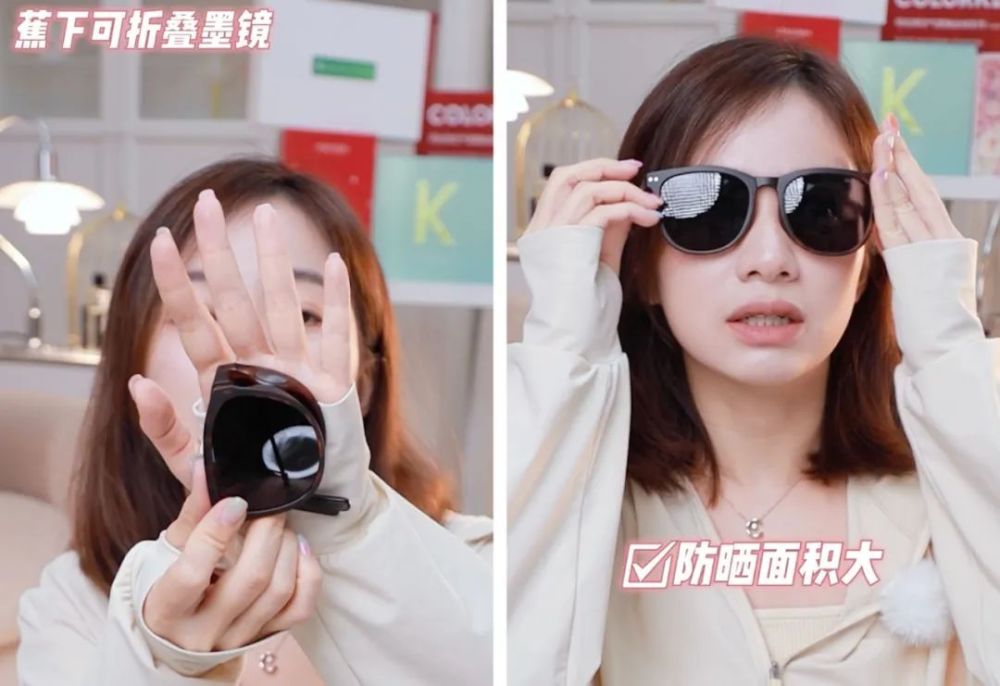 我面前有很多光源,但我戴上墨镜后,眼睛就感觉很柔和。它除了遮光能力好、防晒面积大,整个造型很时尚。我个人非常喜欢玳瑁色,还戴过绿色的就很有ins风韩国小姐姐的感觉。