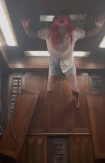 不仅是血,片中艾莉鬼上身后的高难度动作也是找替身演员现学现拍。