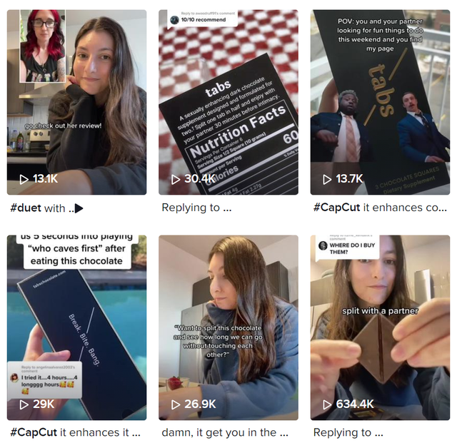 在很偶然的情形下,在一次如厕时,刷 TikTok 看到某个助性巧克力产品的视频异常火爆。有着多年社媒营销经验的 Oliver 知道这样的产品本身的流量属性,在 TikTok 爆发并不奇怪。他尝试在互联网上搜索这家品牌,令他兴奋的是,这家品牌连网站和各种社媒账号都完全不存在。