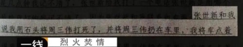 张世新告诉李颖,他用石头将周三伟打死,并将周三伟扔在车里焚烧了。