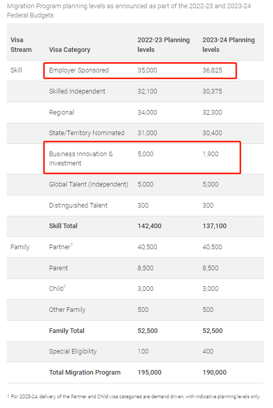 2023-24年这一类别的规划水平较小,是受了新西兰的189类签证的关闭影响。
