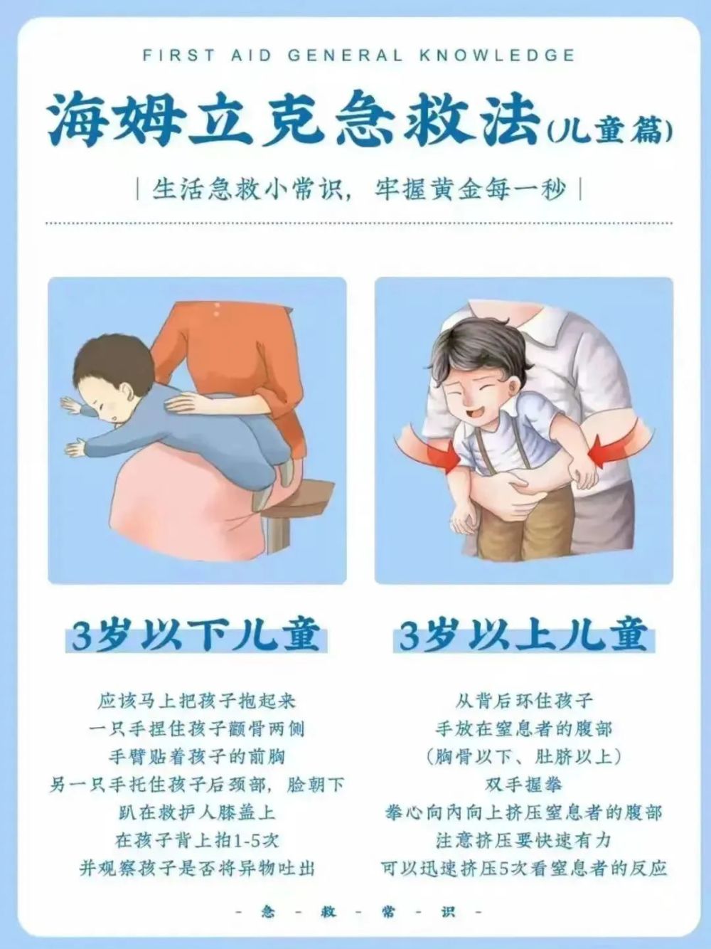 孩子误食异物,如玩具小部件、硬币、棋子等,在发现孩子误食后,应观察其症状:如果孩子脸色青紫、憋气、呼吸困难或出现剧烈咳嗽,提示物品可能进入气管,此时应安抚孩子不要哭闹,如果孩子已经懂事,可尽量鼓励他咳嗽,尝试将异物咳出;若咳嗽不能排出异物,则需立即采取正确的急救方法(海姆立克急救法),其具体操作方法为: