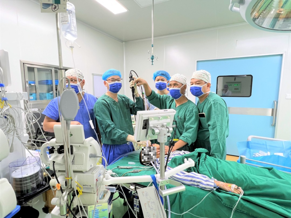 随后,医务科组织重症医学科(ICU)外科组组长陆武华、眼耳鼻喉科副主任甘世勇、内镜中心治疗组长杨健尧、麻醉科主任许文军等医生组成多学科抢救团队,进行紧急会诊并商讨手术方案。