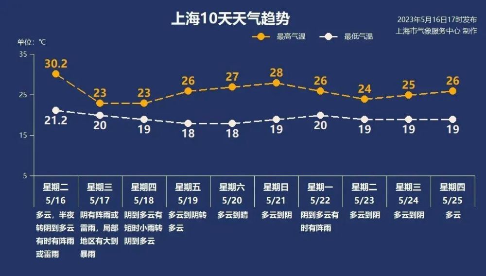 此次降水过后,上海将以多云或阴的天气为主,最高气温回到24℃-27℃,最低气温18℃-20℃,体感在较为舒适的区间。