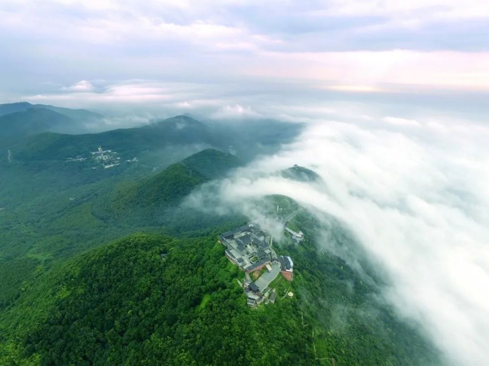 “春见山容,夏见山气,秋见山情,冬见山骨”。走进茅山,就像是走进一个静美精致且纯净质朴的人间仙境。山头被云雾缭绕,山林时隐时现,虚无缥缈,好似漂浮云海之上。朝霞升起,橙红的光芒透过云层洒落,远处绯红一片,近处茫茫一片。一阵风吹来,雾气飘移,山体和亭台楼阁逐渐展现在眼前。置身其中,一时不知是画里还是现实。