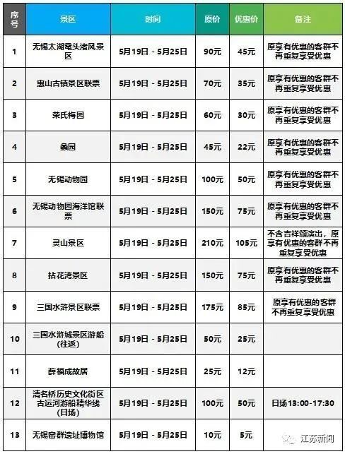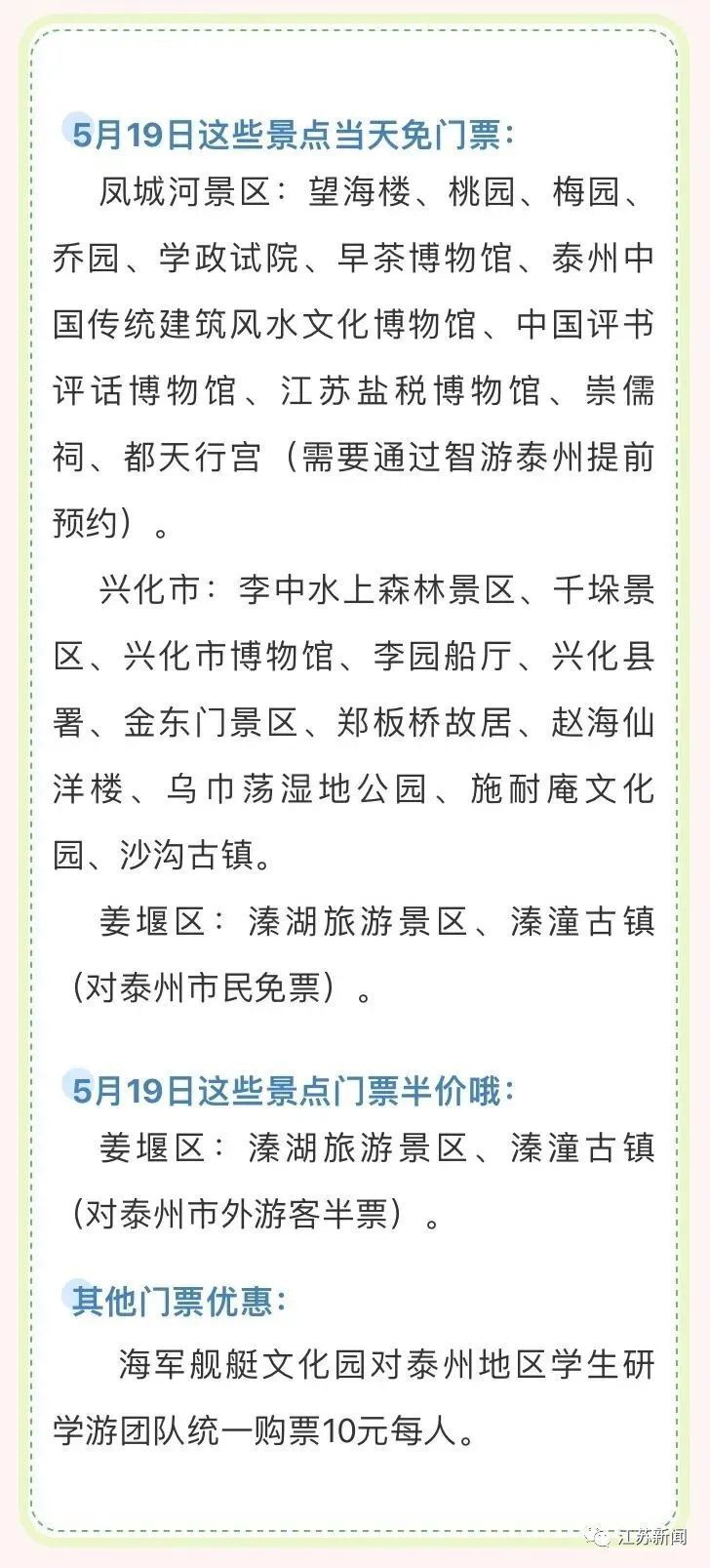 7. 5月19日—20日,双沟酒文化旅游区执行半价政策门票30元/人。