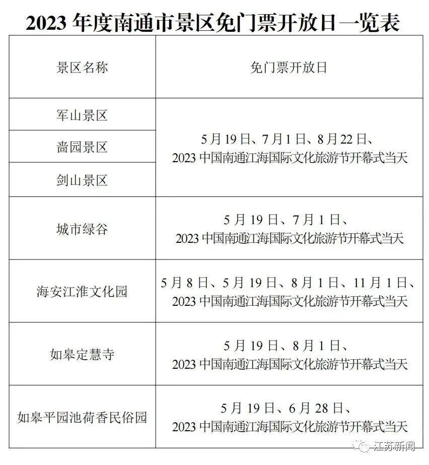 519当日荷兰花海、九龙口旅游景区、丹顶鹤湿地生态旅游区、中华水浒园、梅花湾、金沙湖旅游度假区、桃花源旅游景区面向游客免门票;