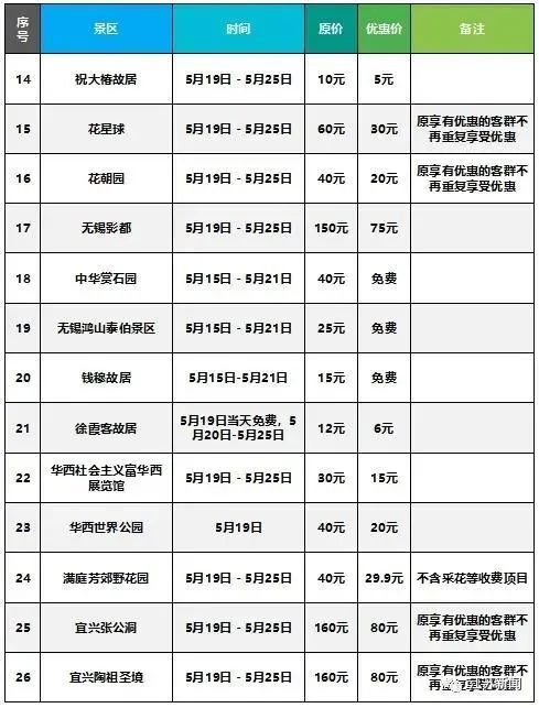 1、5月19日-5月21日,对所有游客实行免门票政策(原价38元/人)。