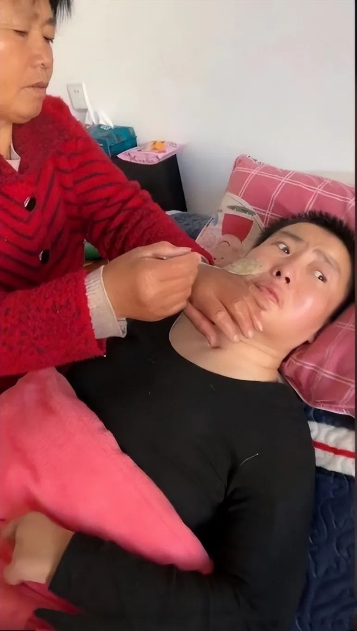 她经常在农忙之余,给儿媳妇做饭、喂饭、洗衣服,不厌其烦。