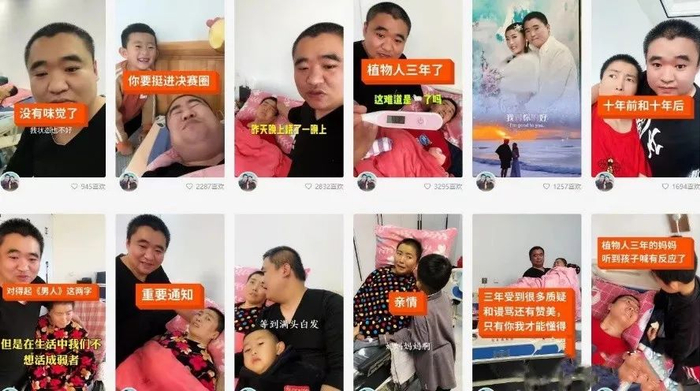 在短视频里,他每天分享照顾妻子的日常,也顺便进行直播带货。
