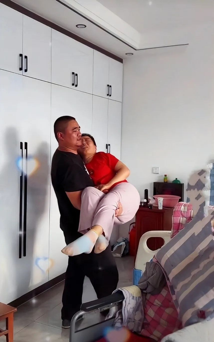 而且,妻子的体重不轻,二岗每次给她翻身、擦身,抱着她上厕所,都很费劲。