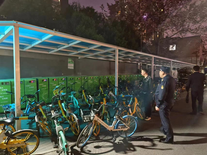 同时,每日晚间,由街道处级领导带队,执法队会同城市管理办公室、平安建设办公室、安全生产检查队开展消防安全夜查行动,重点对社区电动自行车集中充电装置运行情况、电动自行车停放情况等进行联合检查,对室内充电、楼上充电、飞线充电等违法行为进行宣传告知。