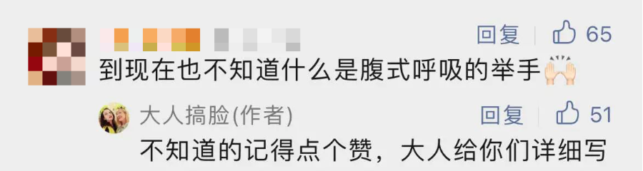 说到腹式呼吸,上周大人在讲「刻意吸气收腹会导致胸式呼吸,影响体态和健康」的时候,有不少姐妹表示: