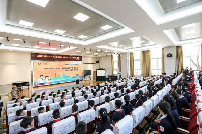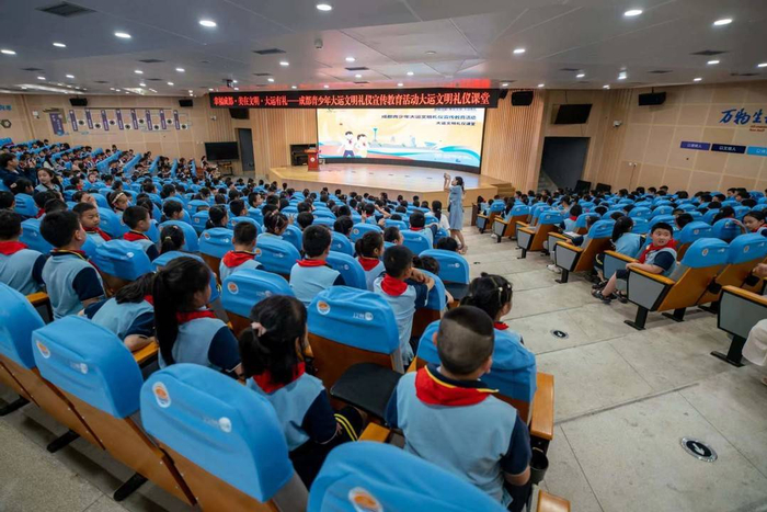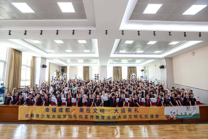 随着成都大运会开幕式的临近,从4月中旬起,“幸福成都·美在文明·大运有礼”成都青少年大运文明礼仪宣传教育活动——大运文明礼仪课堂走进了成都市30所中小学校园,在蓉城青少年之间,掀起了学习大运知识,了解文明礼仪的热潮。在老师们的带领下,万千蓉城学子共同发出“当好东道主、文明迎大运”的青春倡议,相约大运,向世界展现一个文明尚礼的今日成都。