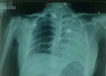 图3 ?在引流左侧胸腔积液后,左侧肺不张未改善,才发现气管插管进入右主支气管
