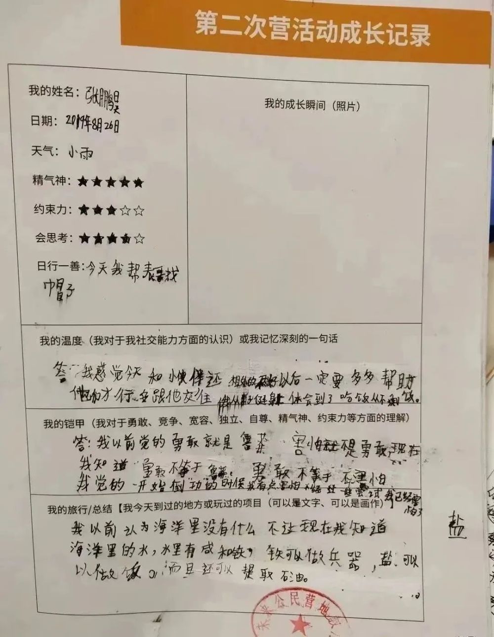 所以,军姿、立正、稍息、齐步,教官只是一步步告诉营员们动作,然后再由每一个孩子轮流来担任教官。