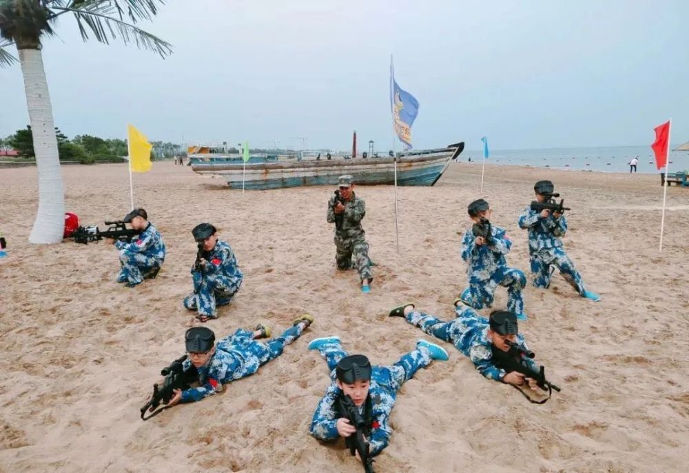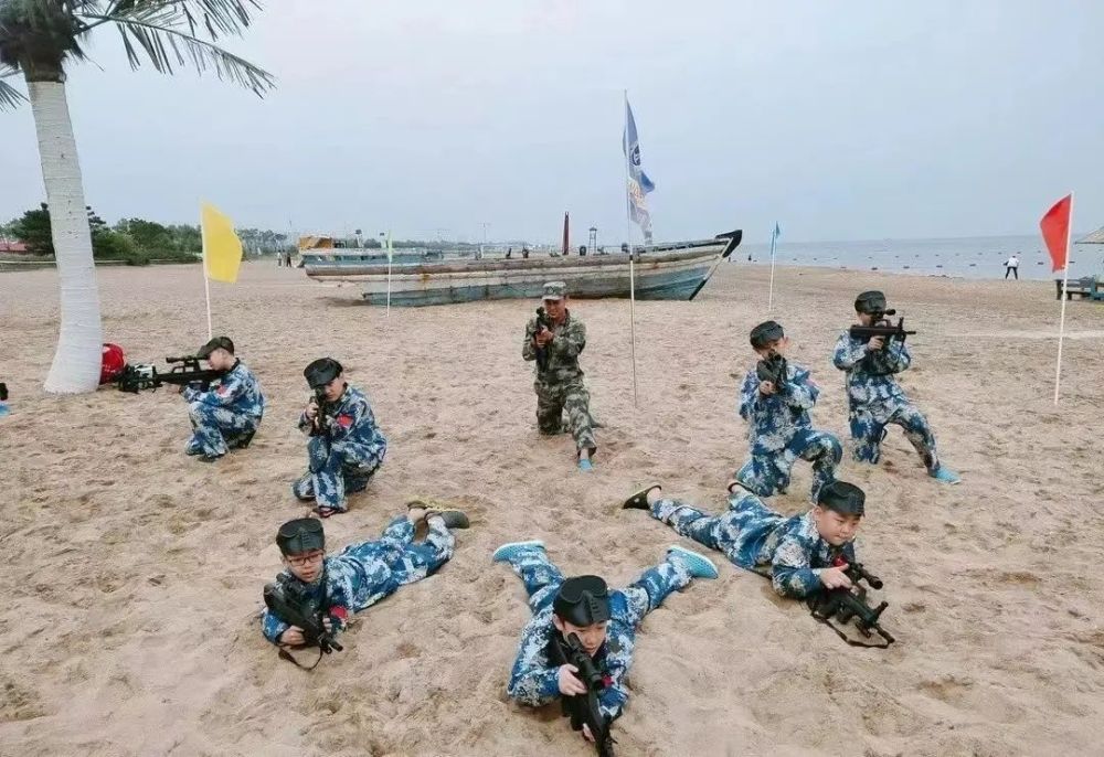 (上两图为以往航空军事训练夏令营图,非海边营图)