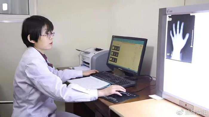 高阿宁查看患儿X光片判定发育情况