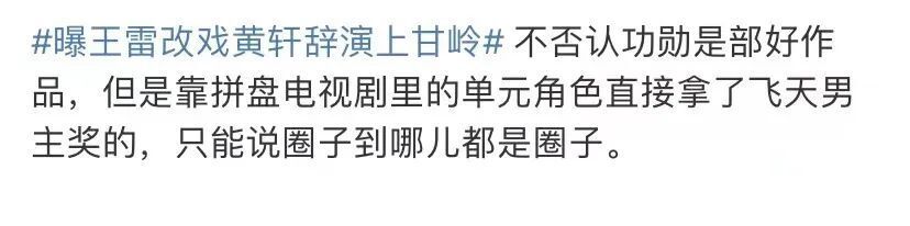 除此之外,王雷凭借《功勋》力压于和伟、黄轩获得飞天奖,也受到了不少人质疑,认为这是一个拼盘电视剧,他戏份只有6集,凭什么得奖?