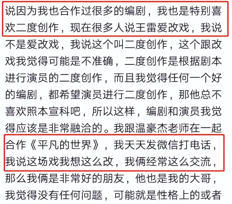 王雷爱改戏这件事,不仅仅是被多人爆料,他自己也承认过,不过却表示自己是二度创作。