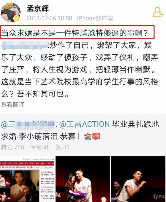 而且,他之前已经求婚两次了,就连导演孟京辉都看不下去了,忍不住公开炮轰他。