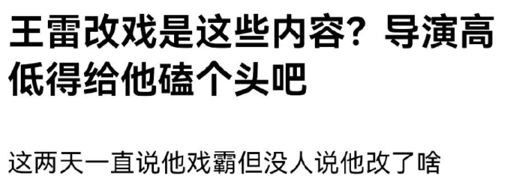 一时间王雷被打上了“戏霸”的标签,许多网友都开始吐槽这也不是他一次两次加戏,改戏了。