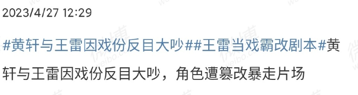 有狗仔报料称,王雷和黄轩在剧组反目,不仅大吵一架,黄轩还被气得直接罢演。