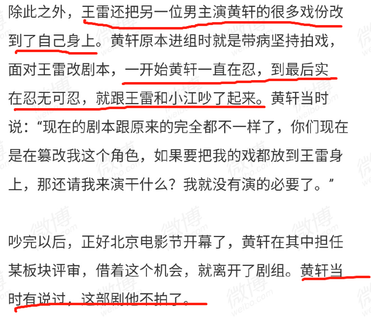 这次和黄轩矛盾爆发的导火索,是因为他把男主角黄轩的戏强加到自己身上,黄轩忍无可忍,俩人后来才吵了起来。